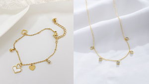 Discover the ultimate symbol of love and elegance with the Everlasting Love Set—a finely crafted bracelet and necklace duo designed to enchant and captivate. With its delicate heart charms and sparkling crystals, this set is a true celebration of romance, beauty, and timeless luxury. Crafted with 18k gold plating over sterling silver, each piece is designed to leave an impression of pure sophistication.