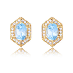 Elevate your style with the Hexa-Luxe Radiance Earrings – where impeccable craftsmanship meets affordable luxury. Embrace the dynamic allure of the hexagonal shapes, adorned with a striking light blue diamond-like zircon, creating a pair of earrings that seamlessly blends geometric sophistication with captivating color. Make a statement with this opulent pair, celebrating the perfect harmony of modern chic and timeless glamour.