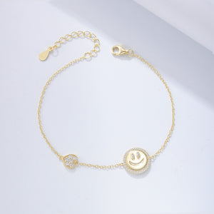 The smiley face charm is adorned with an array of glistening zircons, adding a radiant sparkle that mirrors the joy it brings. This bracelet is a perfect blend of lighthearted charm and timeless elegance, making it an ideal accessory to brighten up your look.